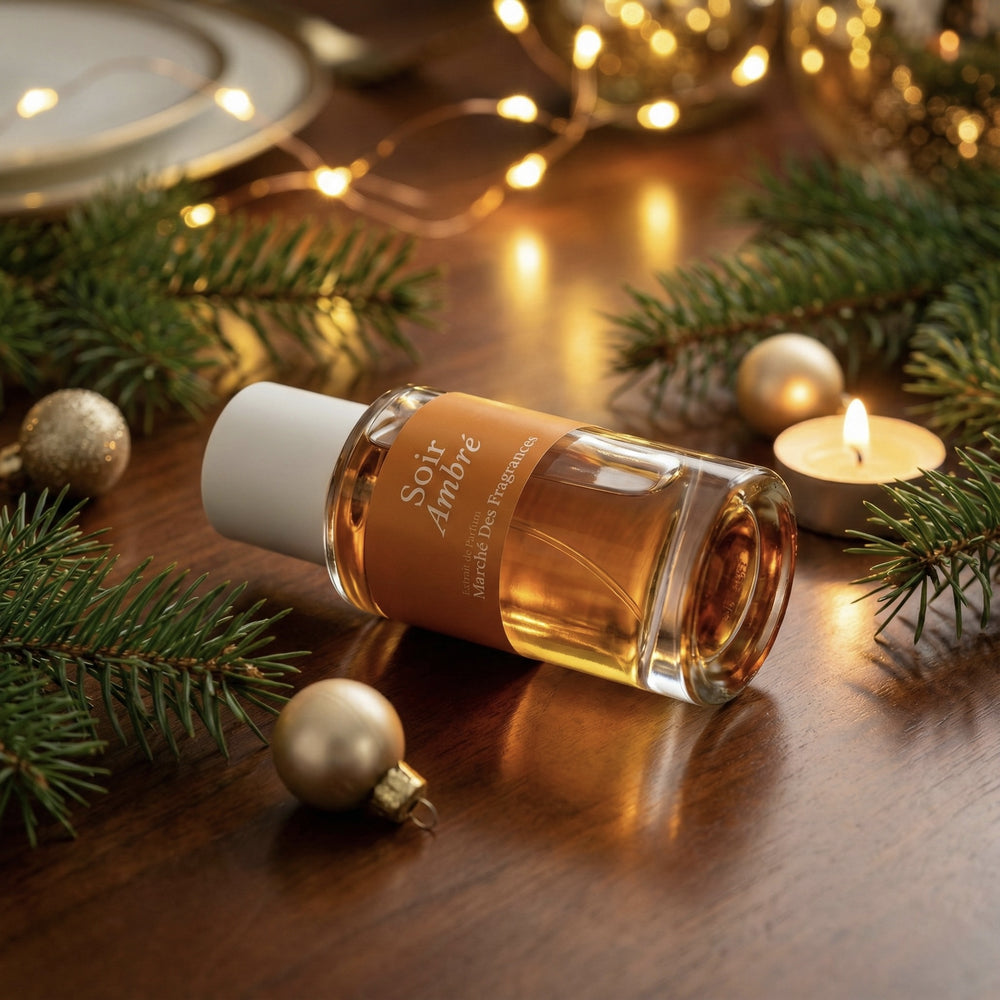 Plongez dans un univers où le luxe et l’art de la parfumerie se conjuguent avec Soir Ambré de Marché des Fragrances, une création qui capte l’éclat et la sophistication d’un cristal précieux.